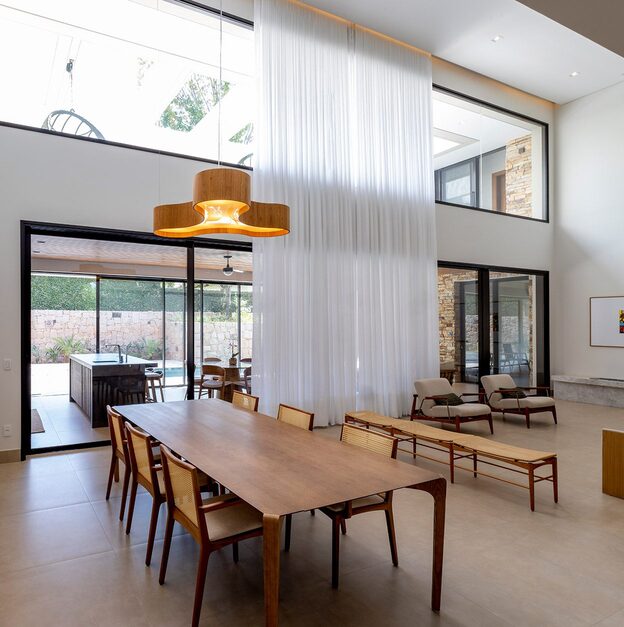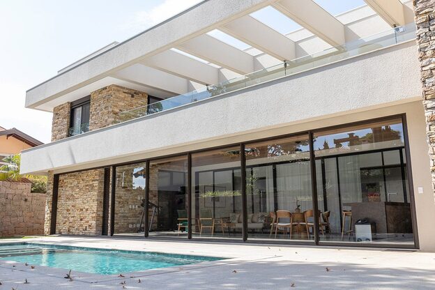 Desenvolvido para atender esquadrias de grandes vãos, o sistema une estética e funcionalidade através de suas elegantes formas geométricas nos montantes que auxiliam no manuseio das folhas.